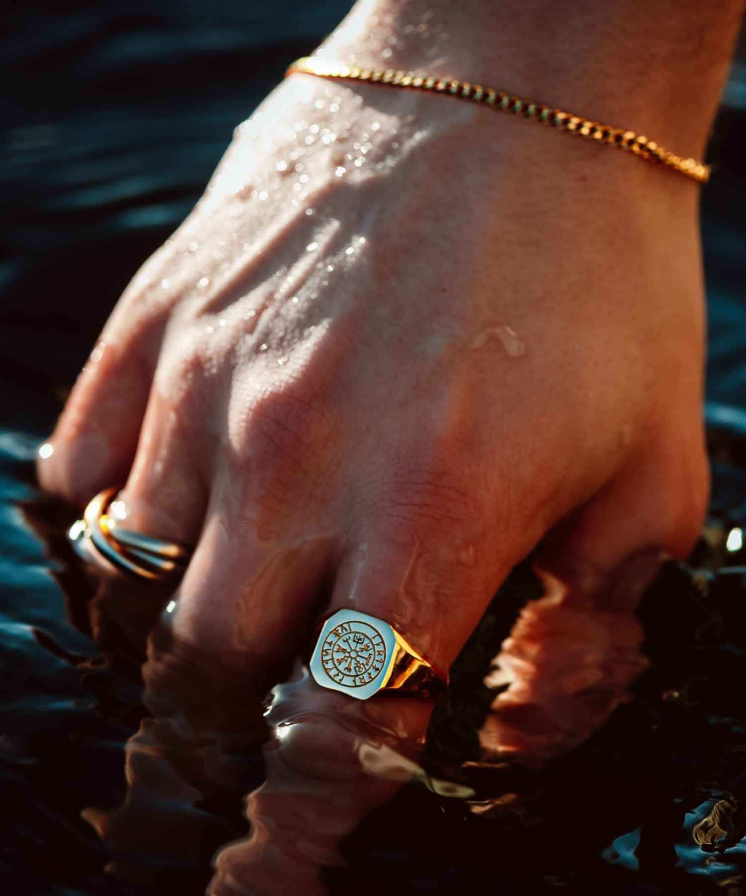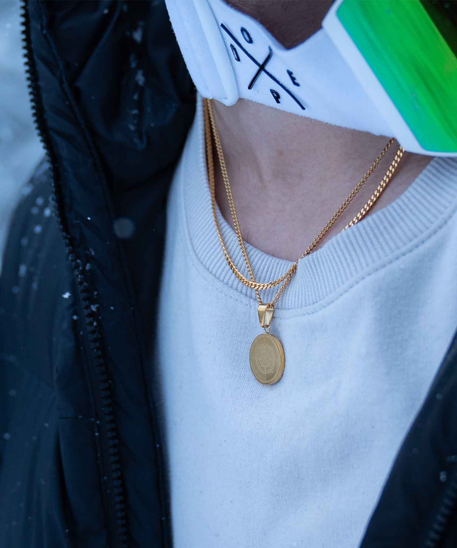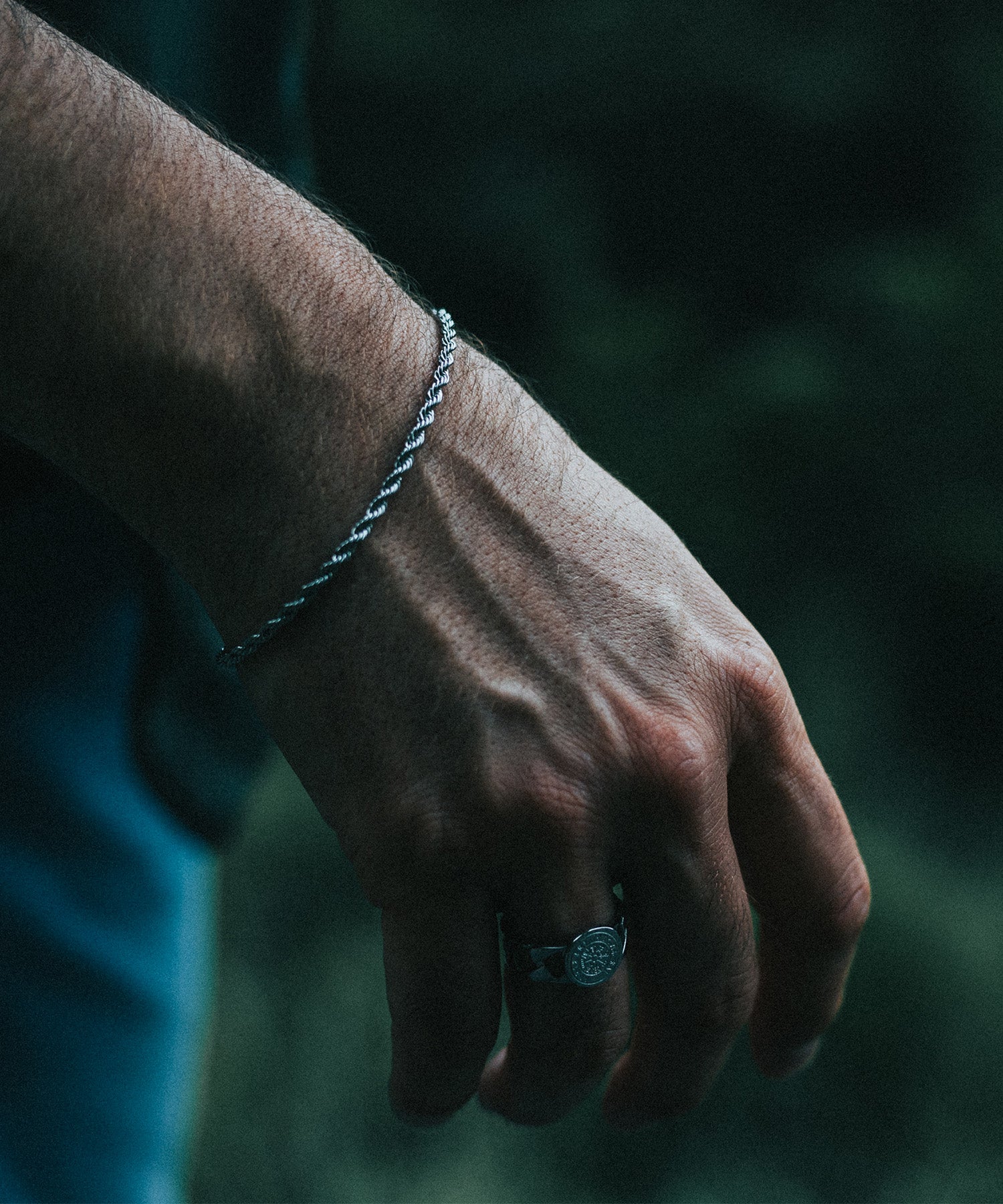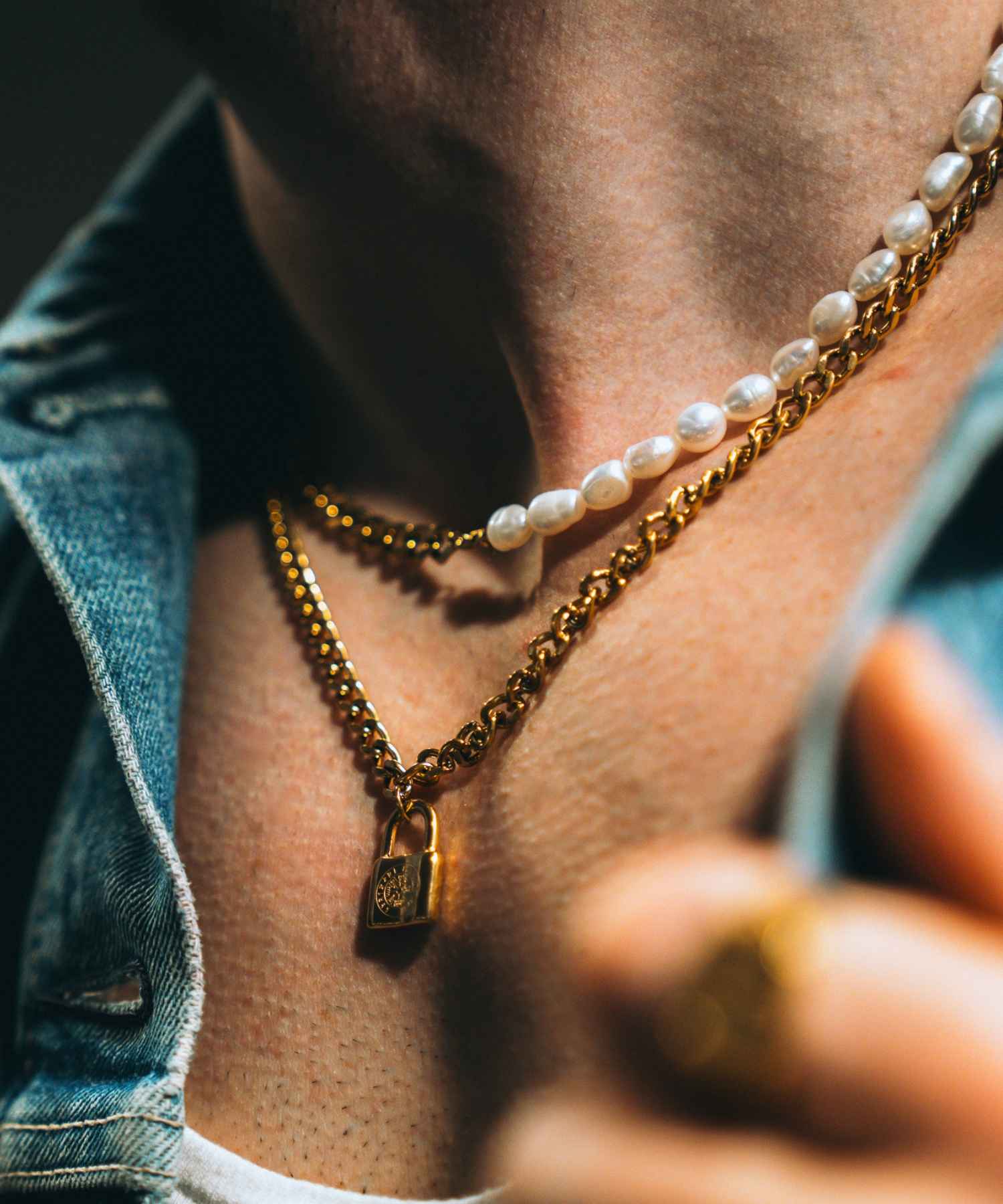 Vores smykker er lavet i høj kvalitets 316L rustfri stål, og belagt med en industriel Physical Vapor Deposition belægning, som gør smykkerne modstandsdygtige og holdbare overfor vand, sved, parfume og slid.