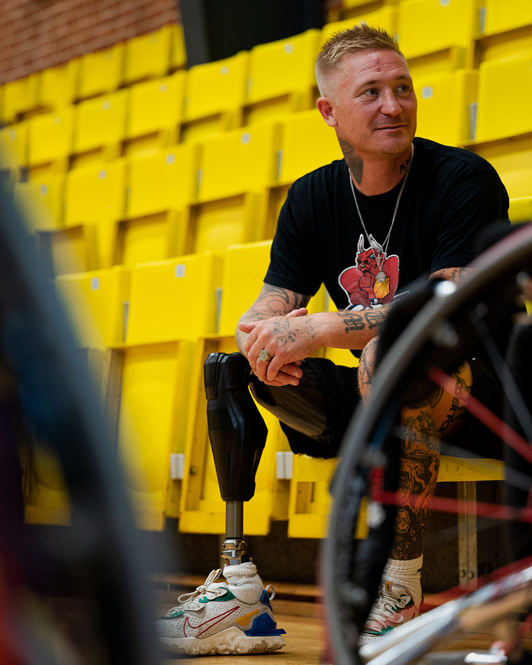 Vores ambassadør, Stefan, er en bemærkelsesværdig figur på trods af at han kun har et ben. Efter en alvorlig ulykke har han genopfundet sig selv og er nu en stjerne på landsholdet i kørestolsbasket 🏀.